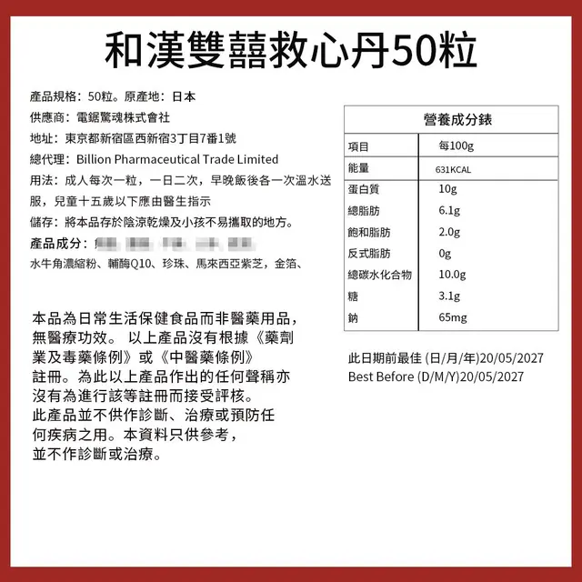 水牛角濃縮粉、輔酶Q10、珍珠、馬來西亞紫芝,金箔、
