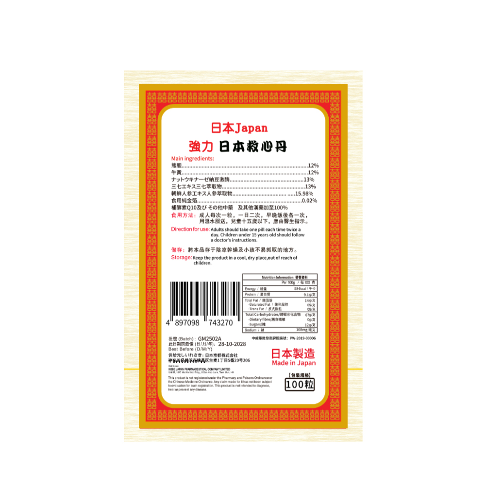 神户救心丹日本制造(12%熊胆)100粒