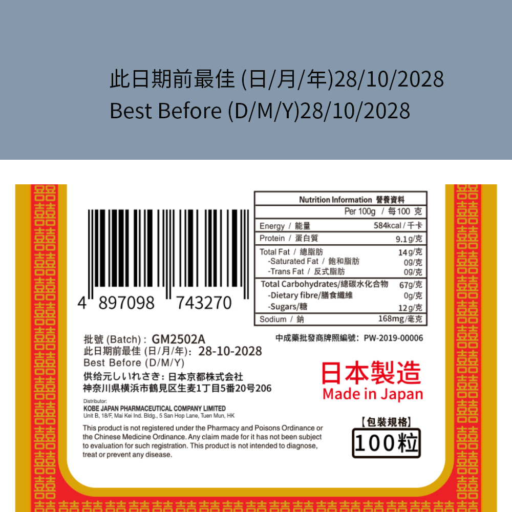 產品規格:100粒。原產地:日本