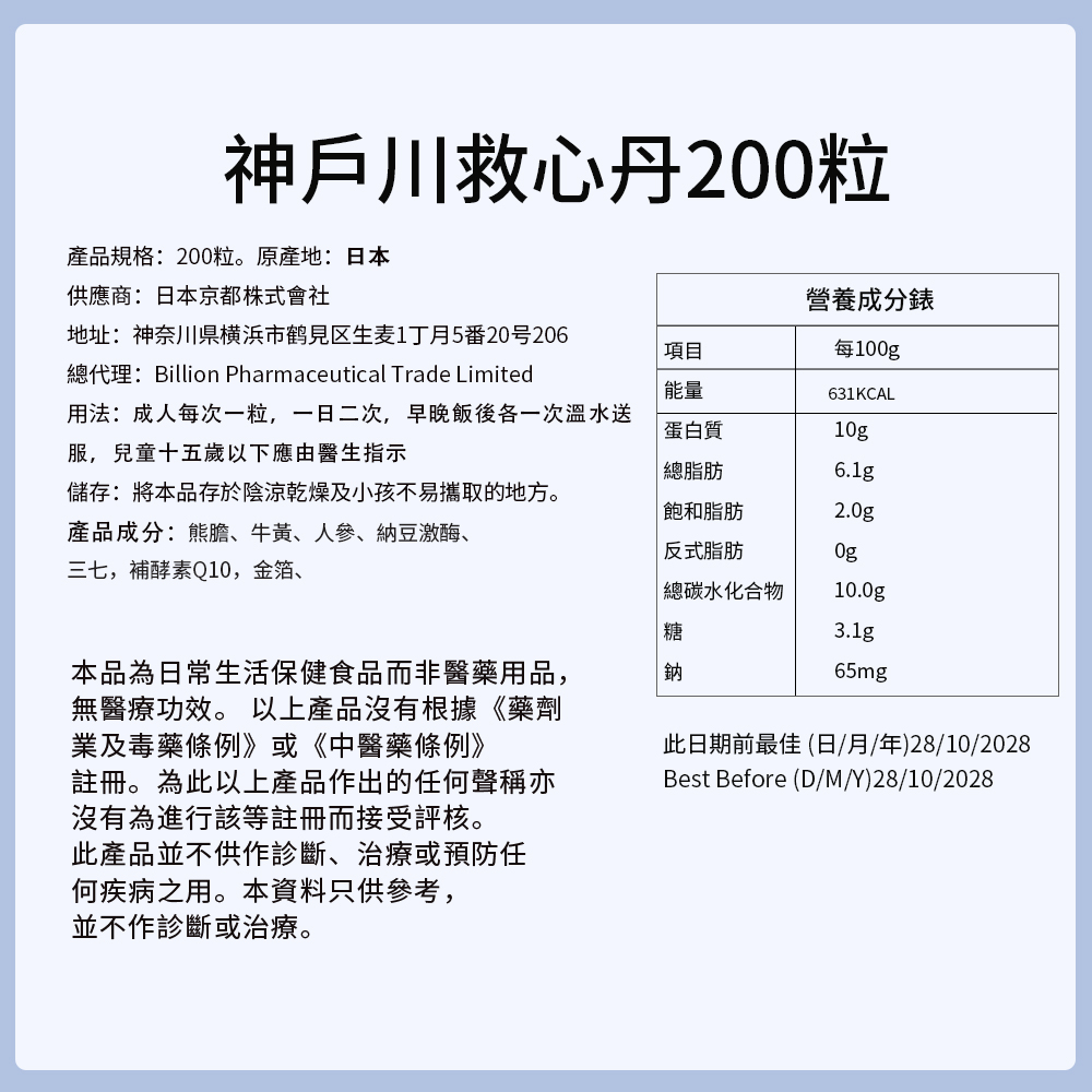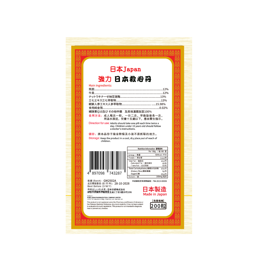 神戶救心丹日本製造(12%熊膽)200粒