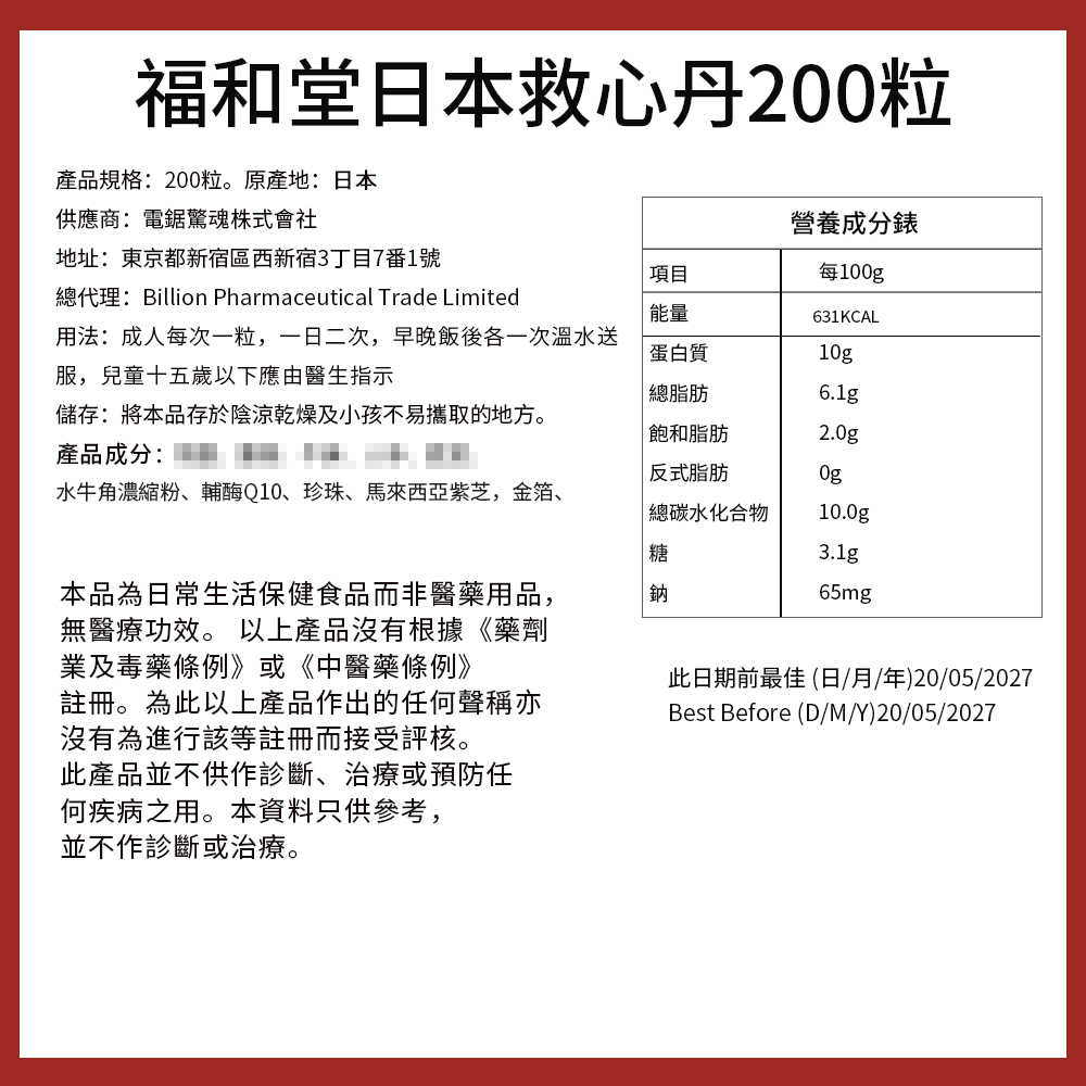 總代理:Billion Pharmaceutical Trade Limited