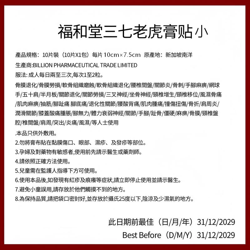 福和堂三七老虎膏貼小(10cm×7.5cm)