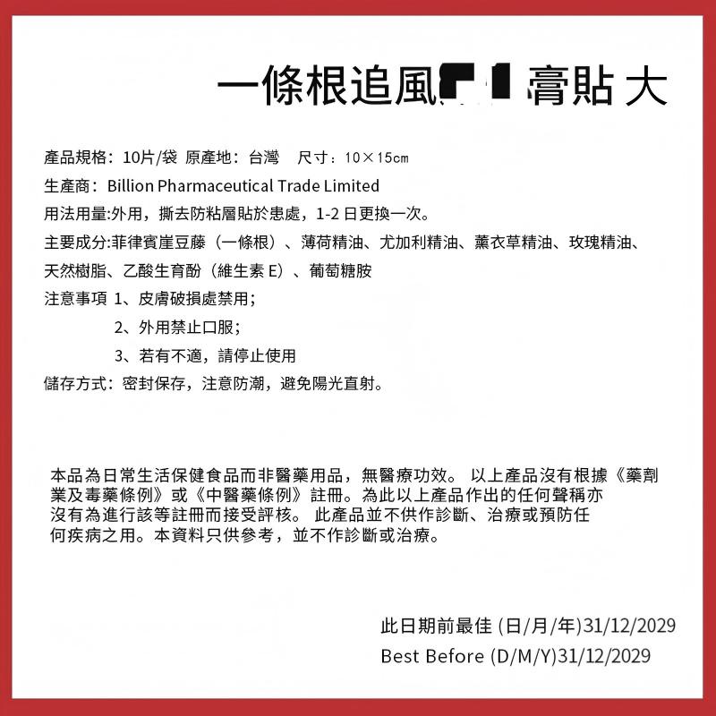 福和堂一條根追風膏貼 大(10cm×15cm)